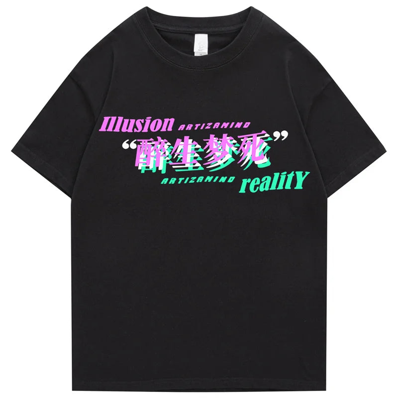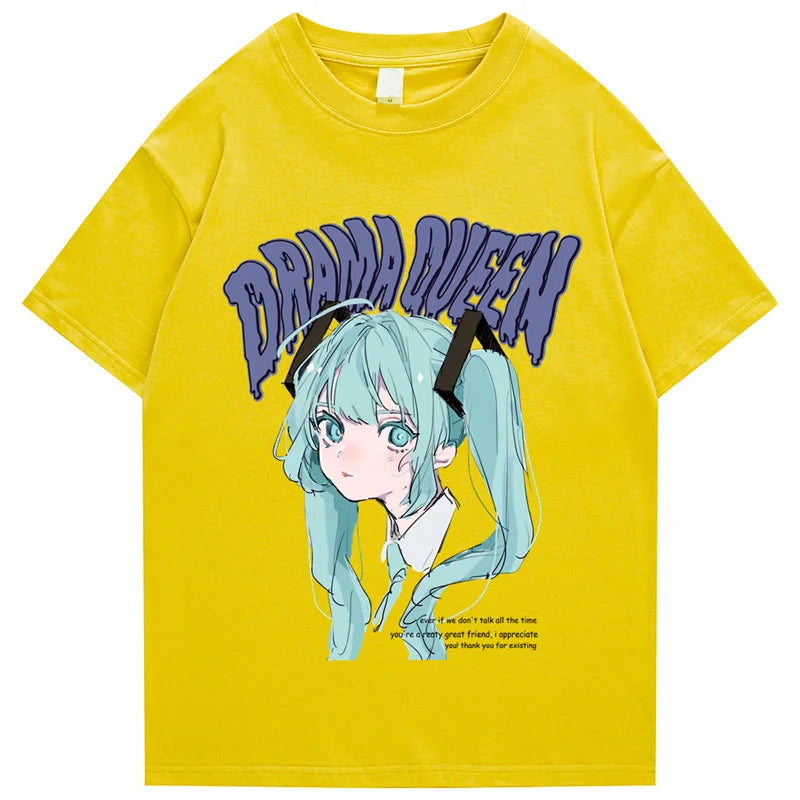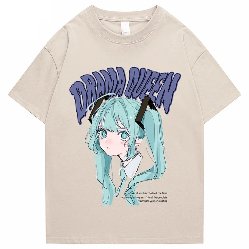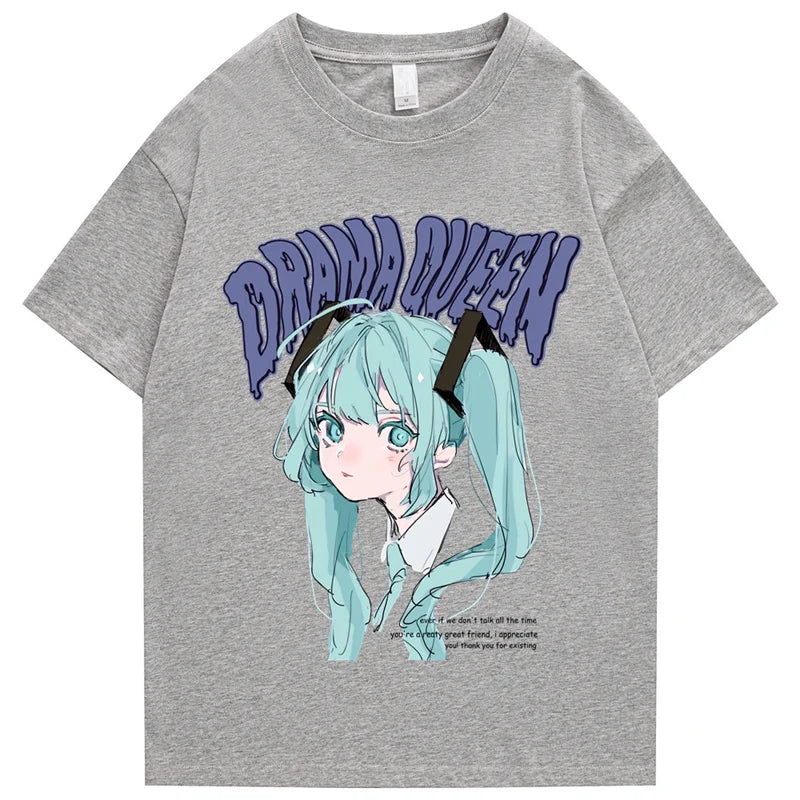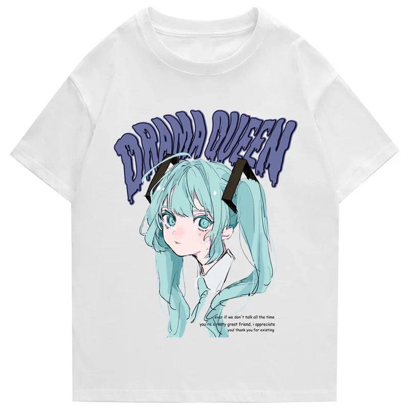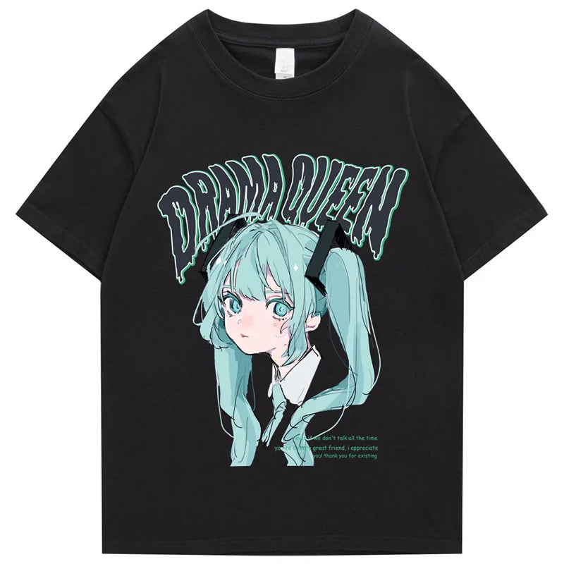 Hip Hop Streetwear T Shirt Anime Girl Letter Print T-Shirt 2023 Men Harajuku Cotton Casual Tshirt Short Sleeve Tops Tees Black